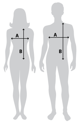 We recommend compareing your own garment size to ours. You can do this by measuring the ½ chest of your garment (laid flat, measured 2cm below the sleeve join, from side seam to side seam) and compare it to ours.